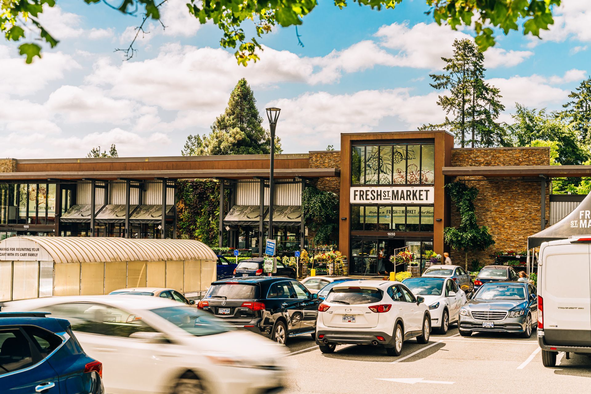 General overview: Home of Fresh Street Market in West Vancouver, Van Cha Tea House, and ample surface parking.