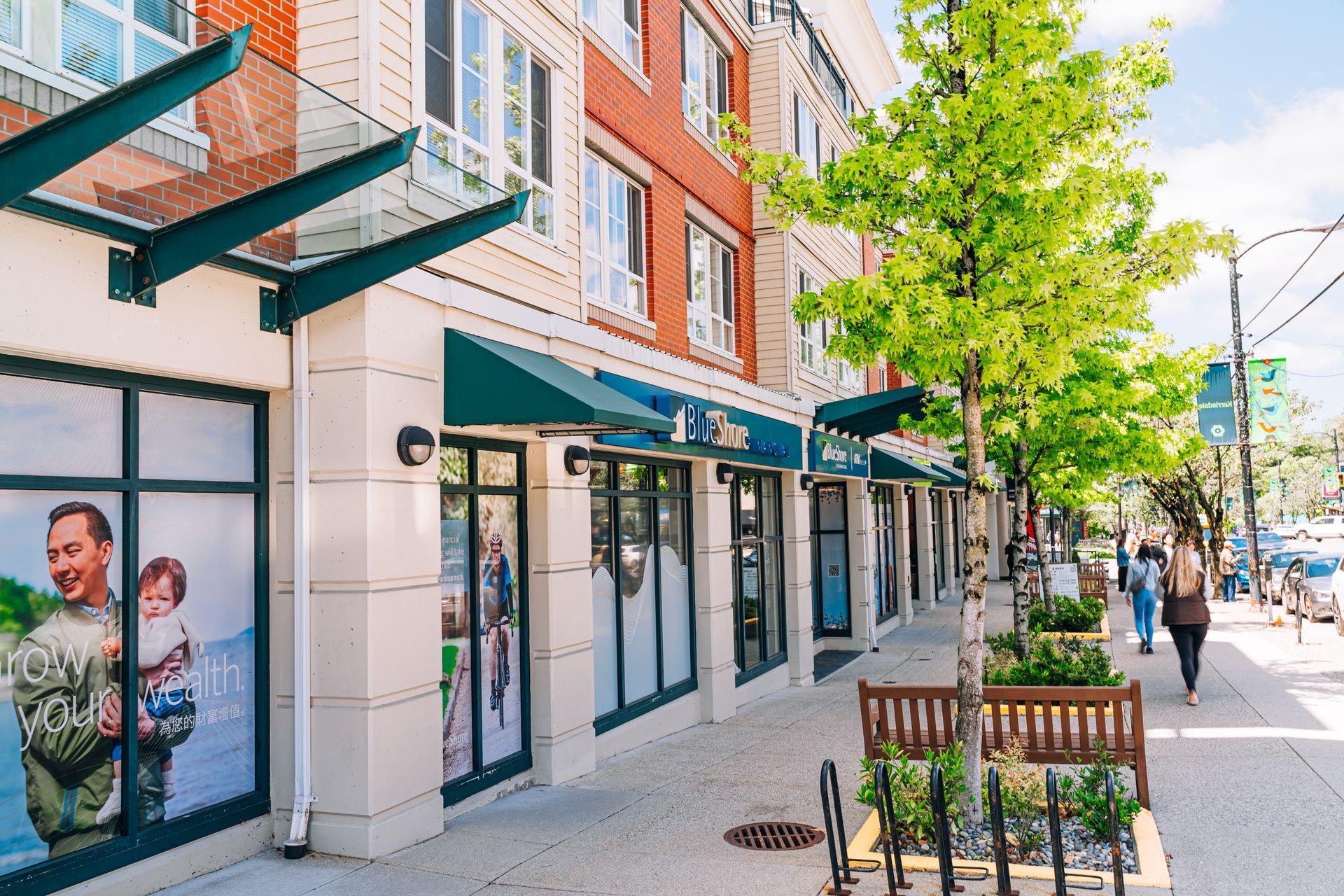 General overview: Mixed-use residential rental building with retail on the ground level in the heart of Kerrisdale. Anchor tenants include Blueshore Financial.